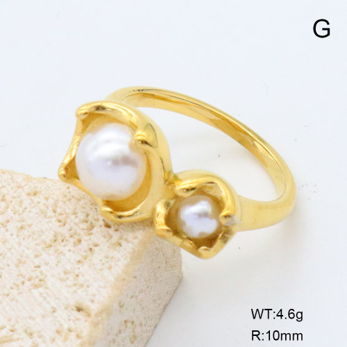 stainless steel (standard stainless steel material, not easy to fade and allergies) , GER001461vhha-066 6-8# 18K PVD Resin Imitation Pearls,Handmade Polished Stainless Steel Ring BC24041062R-P