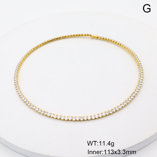 stainless steel (standard stainless steel material, not easy to fade and allergies) , GEN002184vhol-066 18K PVD Zircon,Handmade Polished Stainless Steel Necklace BC25100370N-WT