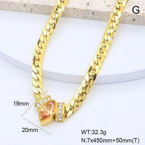 stainless steel (standard stainless steel material, not easy to fade and allergies) , GEN002130vhmv-066 18K PVD Czech Stones & Zircon,Handmade Polished Stainless Steel Necklace BC25060143N-CE